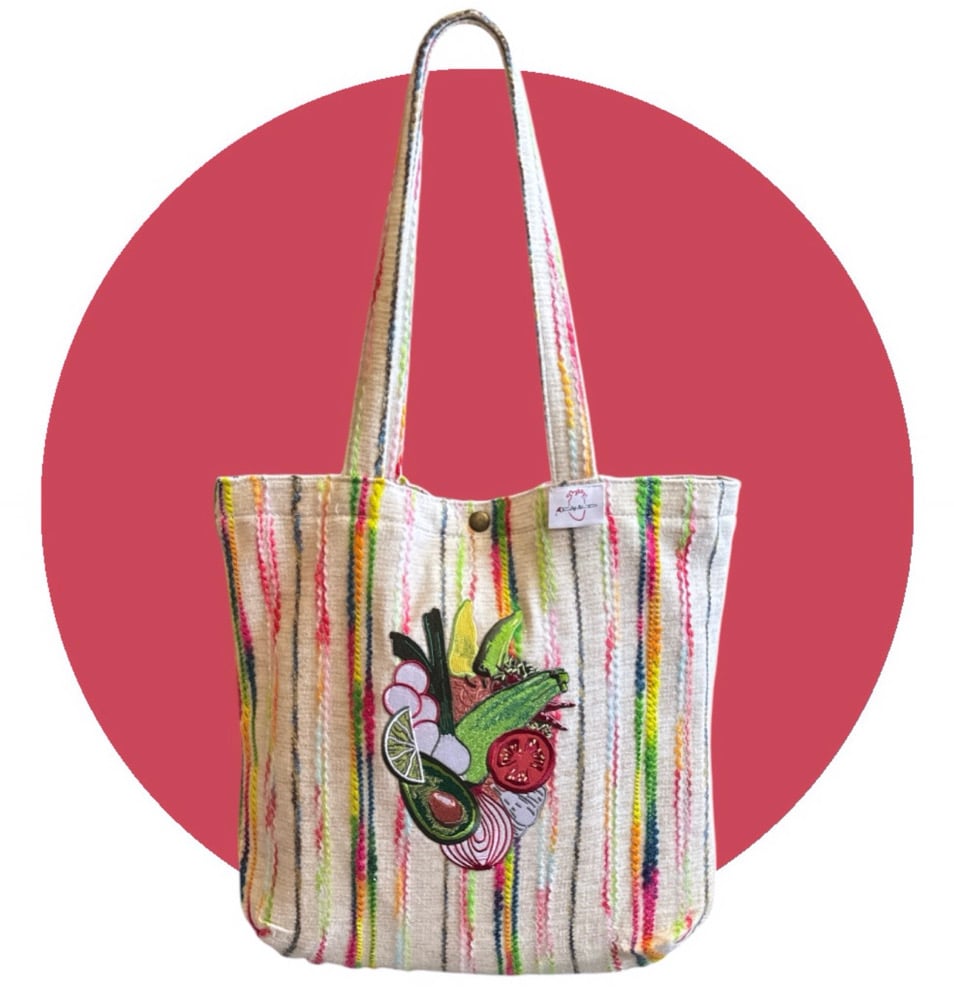 *Rainbow tweed bag *Measures 14x15x3 *Lined in linen, magnetic button closure, 2 interior pockets *Sticker included