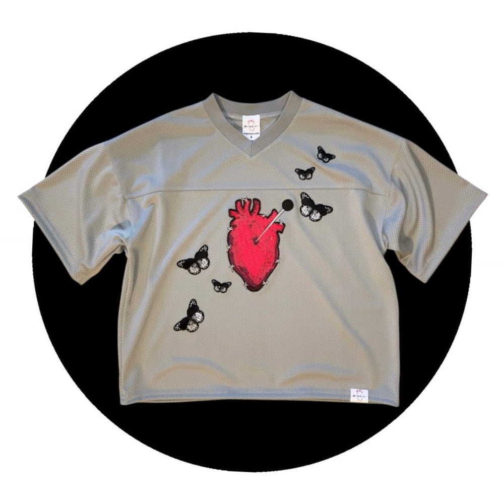 Grey Cropped Jersey/Runs BIG Featuring out "Que Te Duela" LIMITED EDITION PATCH paired with matching butterflies.